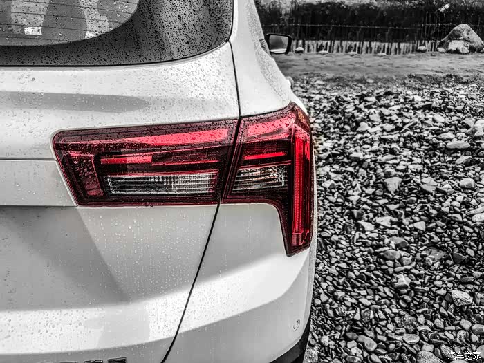 外观走的是阳刚硬汉路线,肌肉感十足;“星空点阵式”前格栅与双侧“光翼”镀铬装饰条的搭配,霸气尽显;双色车身设计,搭配悬浮式车顶, 兼具科技感与时尚感;运动规格的 18 英寸五辐式轮圈,质感强劲有力。车身侧面采用了较多的平直线条进行勾勒,贯穿车身左右的腰线在后门出进行了断开式设计,进而让整个侧面呈现出较为不错的光影效果。