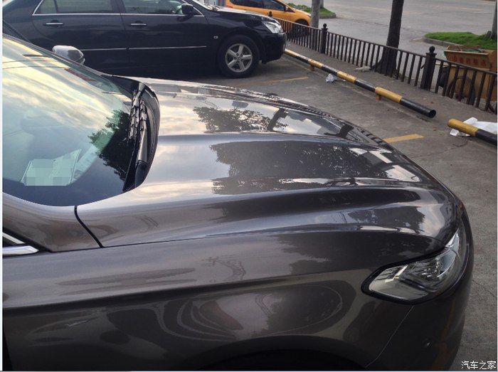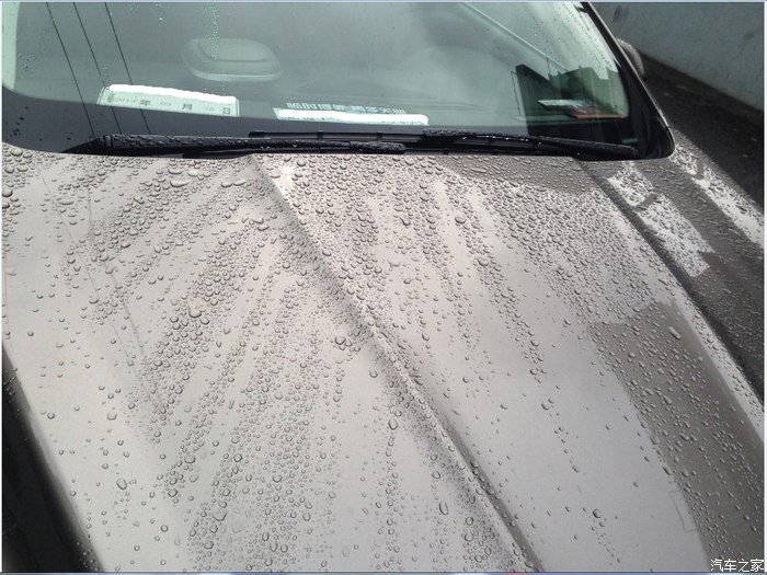 由于镀晶他教了一遍之后是我自己镀的,所以一个人忙活了一天,腰都断了也忘记拍照了,就上个镀好晶之后的效果,上面的照片是停车下雨时的情景,结成水珠状,车一开就全部滑下去了~有没有注意到前档玻璃~?我用镀好晶的擦布轻轻抹了下,雨水几乎不沾呐~