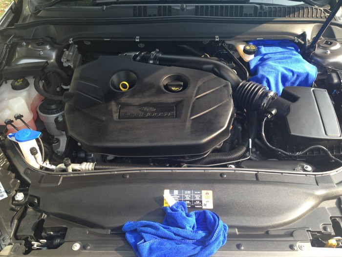 上图是擦干净发动机舱还没镀膜的样子