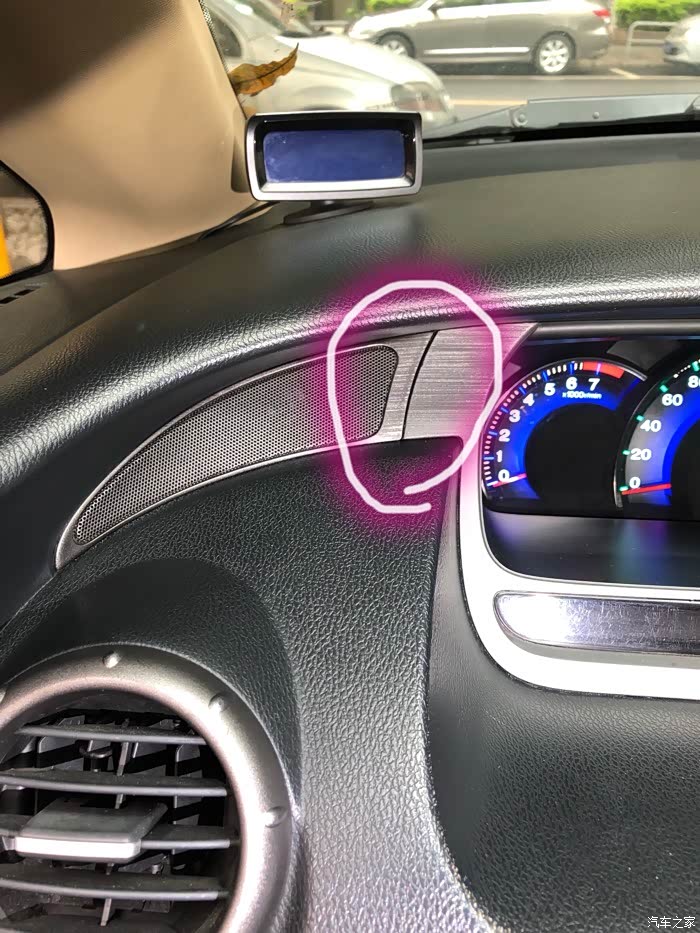 仪表框没有螺丝固定,只有两个卡扣固定,具体位置在?的后面。