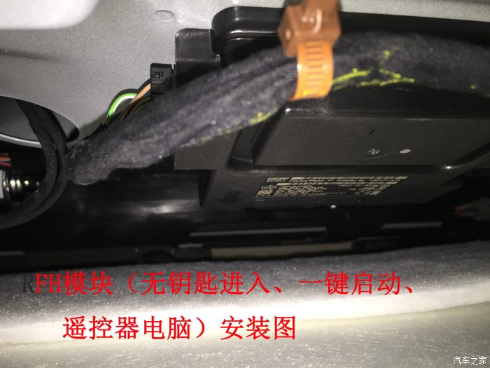 打开后尾门,拆除后尾门防水条将顶棚饰板拉下,拆掉原车的不带远程遥控启动、无钥匙进入、一键启动的三无RFH模块,更换带有以上三大功能的新模块。