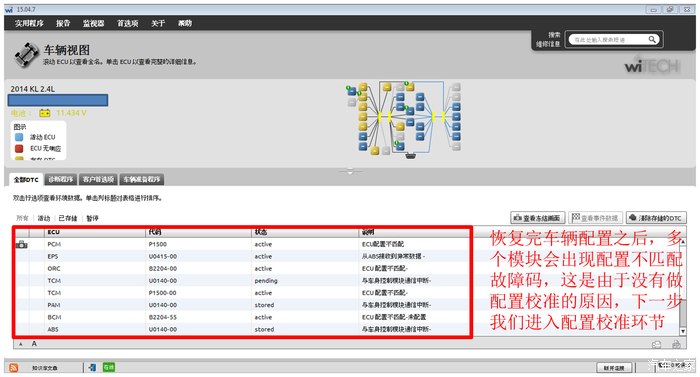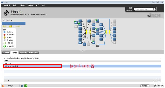 b)使用WITECH对车辆配置进行恢复