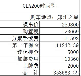 这样时间就来到了2015年6月份,4S店的销售给打电话了,说现在GLA有现车,而且还不加价,于是果断到店交了订金。到7月份了,车也到了,但是家人看中了一套价格很好的房子,把资金挪走了一大部分,于是就想先做分期,可是算了一下,分期手续费和利息算下来也不少,所以就又拖了两个月。9月份的时候,销售又给打电话,说现在分期0利息了,正好也想中秋节开车回老家,国庆节出去玩,这个优惠政策也不错,提就提吧。哪想到,刚提了车一个星期,国家购置税政策十一出台了,国家给免一半,4S店全免了。就差了一周,唉,说多了全是泪啊。