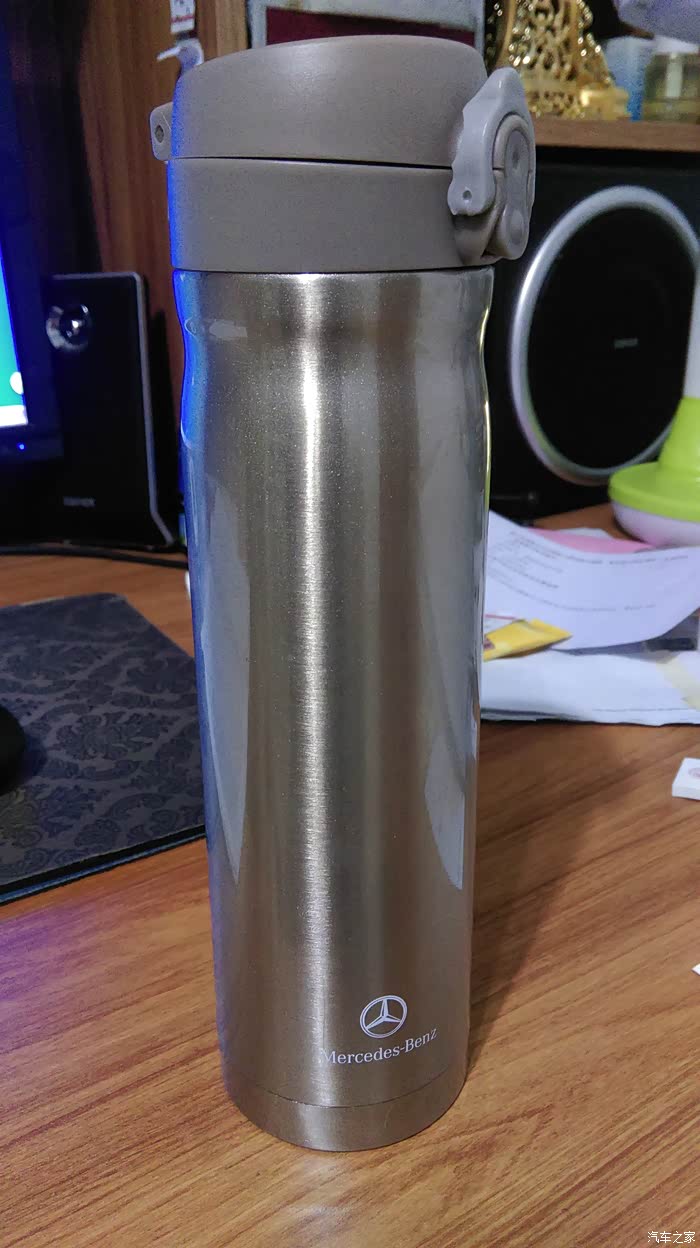 送的奔驰保温杯,杯子还行,早上倒的热水,下午还是热的