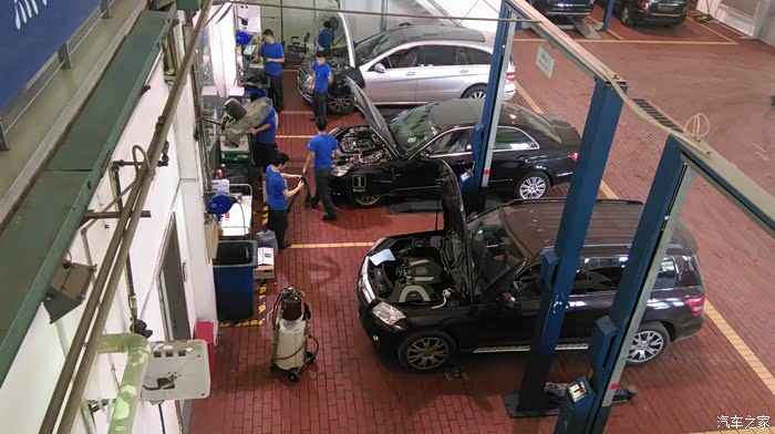 餐厅后面就是4S店的车间,下面一派忙碌的景象