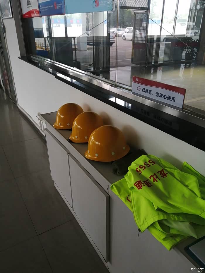 怎么还有这个安全帽?原来是给客户准备的,想进去看车就得戴,为比亚迪的服务点赞