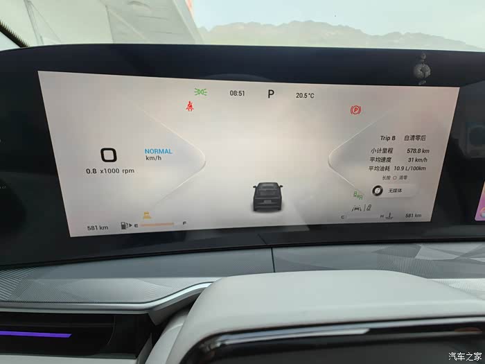 用车成本还体现不了,毕竟只行驶581公里,加了两次油第一次加了480元,第二次加了380元,表显还可以跑581公里,这样算下来大概0.74元/公里;