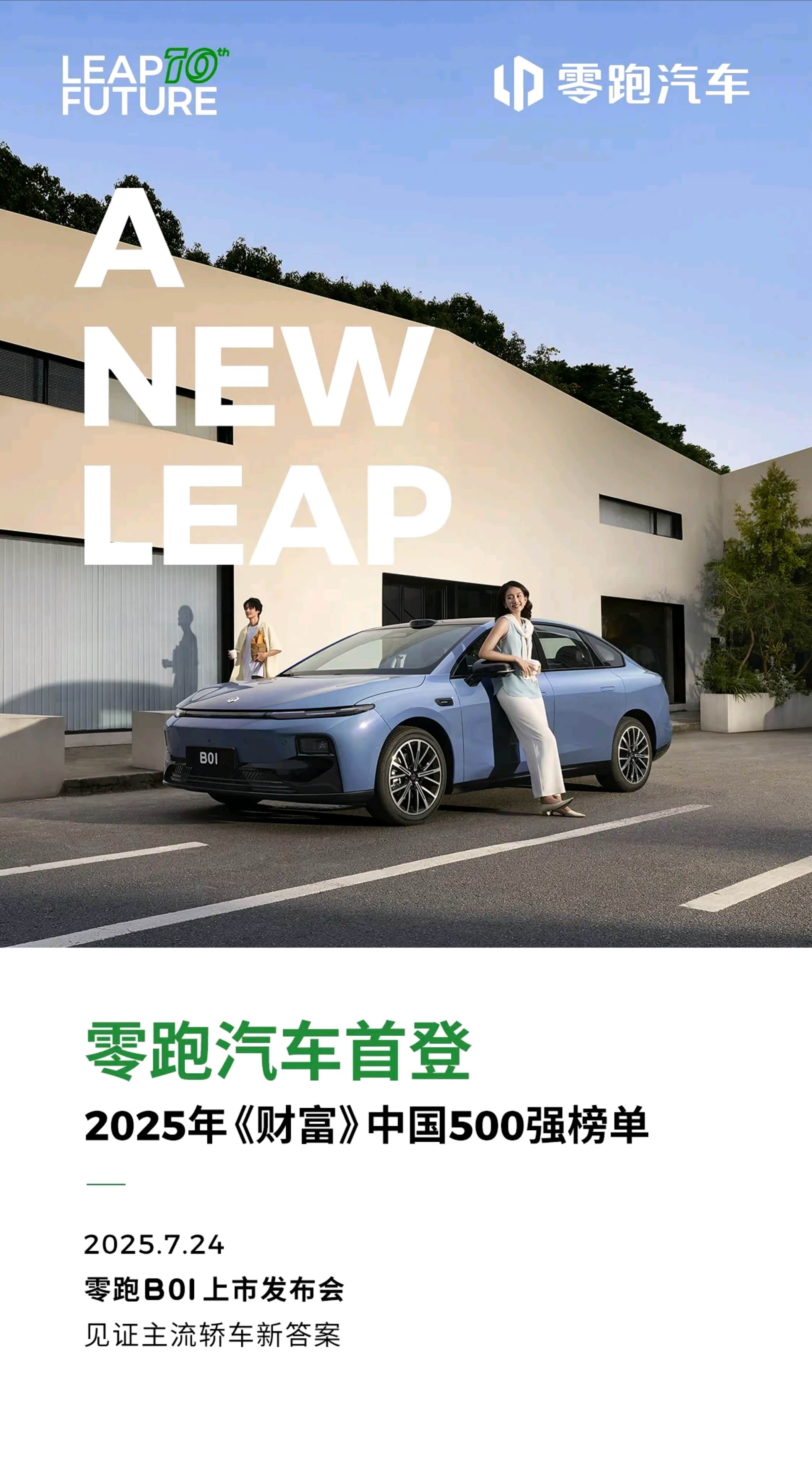 7月22日,2025《财富》中国500强榜单出炉,零跑位居423位,是新能源车企中唯一新进力量。《财富》中国500强依据企业财务年度总收入进行榜单排名。零跑汽车2024年公司营收同比增长接近一倍,实现净利润转正。进入2025年,零跑汽车不断冲刺业绩新高,上半年累计交付超22万台车,稳居新势力第一。通过与Stellantis集团战略合作,落地海外布局,辐射中东、欧非及亚太超30个国际市场,上半年出口量居新势力品牌第一。