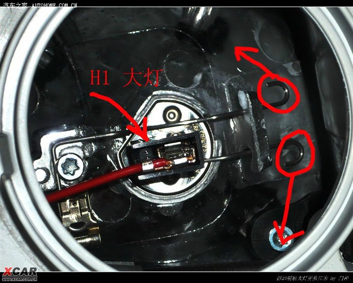 现在看看如何拆h1的远光灯,一样是很简单的,步骤跟近光灯一样,只是后罩更容易取。