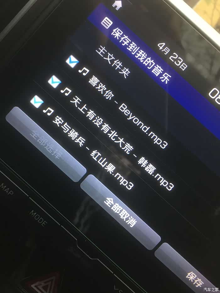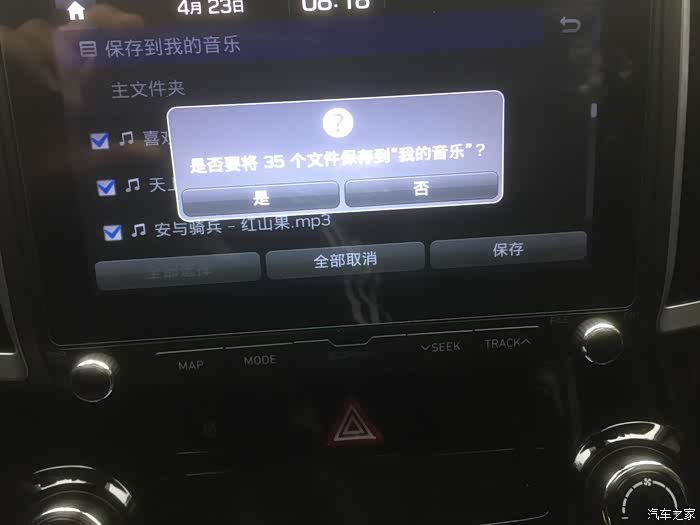 18款35U盘接口是常电 是常电 是常电,重要的是说三遍,特意咨询了厂家建议不要长期插这优盘,会对电瓶不好,下面就教大家如何把U盘中的音乐导入中控大屏的文件夹内。