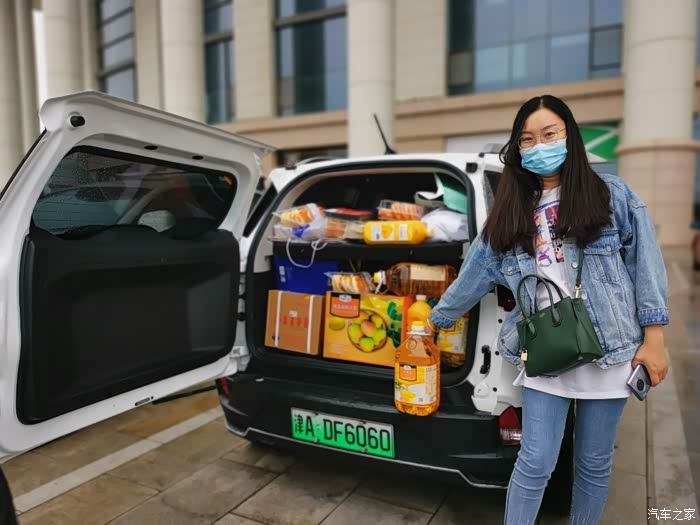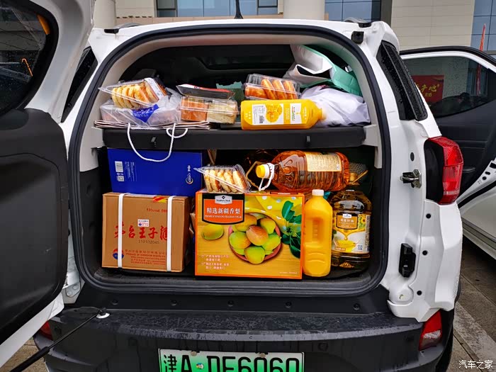比赛都到中场结束了,才看到娘几个推着车出来。哈,原来东西是真不少买,买满了整个后备箱呢!