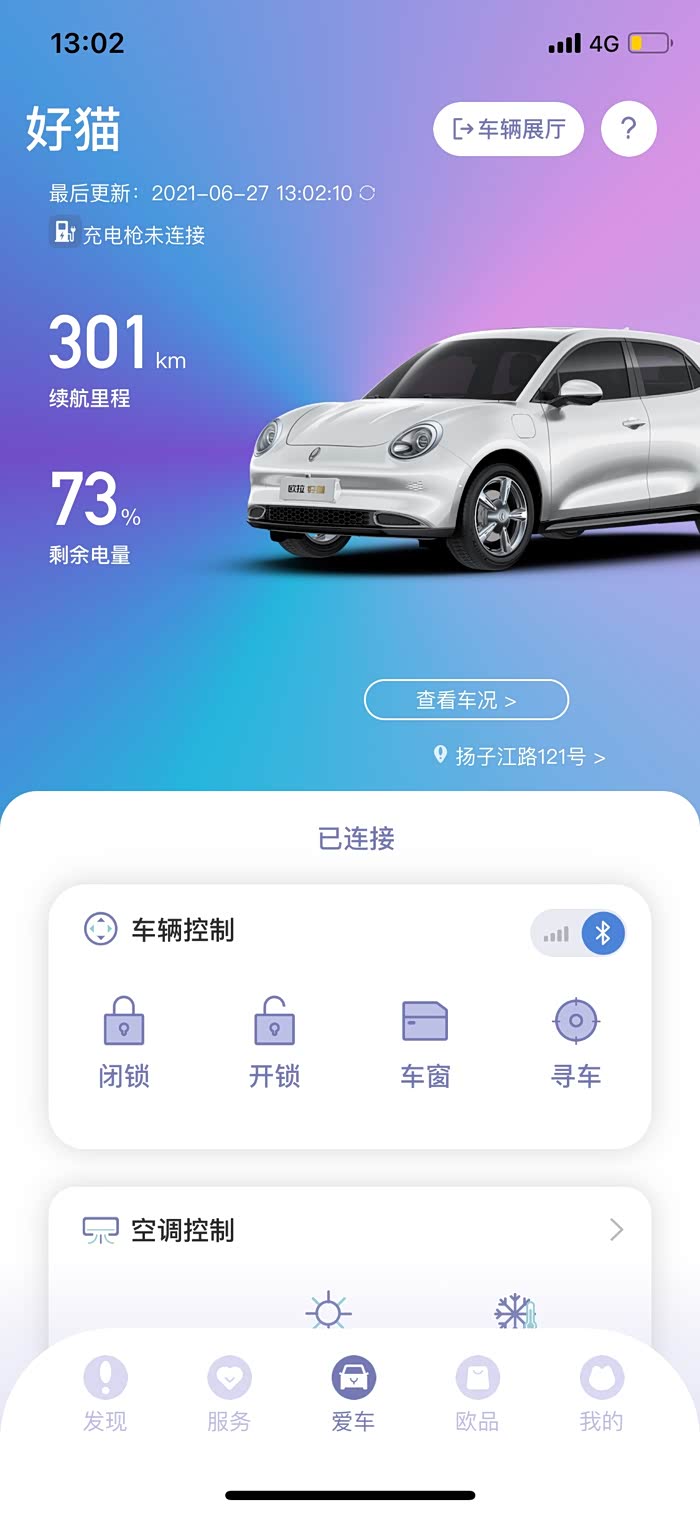 翻了好一会,准备掏出手机打开欧拉好猫APP准备直接锁车走人了,才发现原来原来是好猫APP蓝牙解得锁,开的车,怎么更新完蓝牙变得这么好用了?