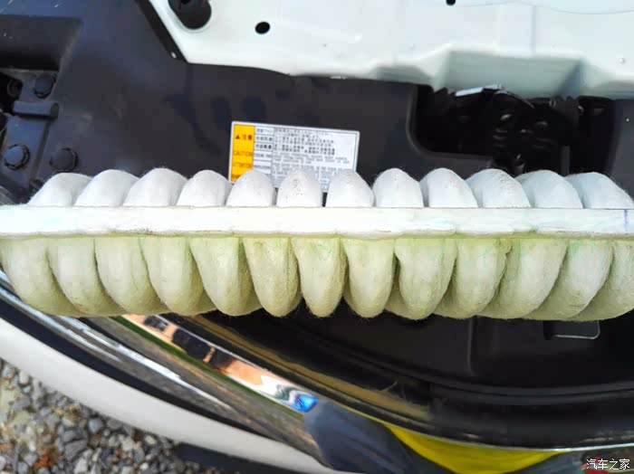 打开空滤器,拿出空气滤芯,达克纶材质,双层结构