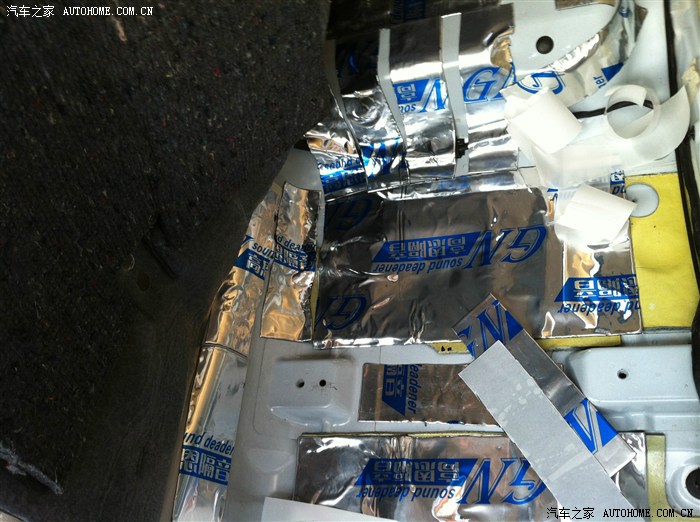 做完5门隔音后我觉得开始有些效果了,起码门厚重多了,关门声音好一点,但不是太理想,因为原厂玻璃密封就做的不好,一关门玻璃就会震动,有时间买点密封条在搞定它,插钥匙的声音都变的好听了,轻轻的敲一下门也不再感觉是在敲一层薄薄的铁片,厚重多了,但是有一个问题,后备箱门做完之后自己不能完全升起了,可见材料是不轻。而且做完后备箱门后我感觉去噪还是比较明显的,大家可以试一下坐在车里门全关好,然后轻轻的晃动后备箱门,震动的噪音很大啊!!做完之后就基本消失。