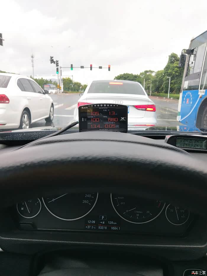 这是今天十一点时候拍下的,当发动机温度维持在水温油温110度大概十分钟左右后发动机舱开始升温,室外温度传感器温度随即上升超过37.5°后水温马上下降。
