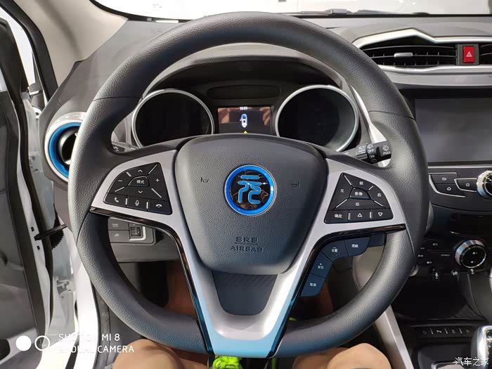 方向盘上有多个控制按钮,可以方便行车控制。