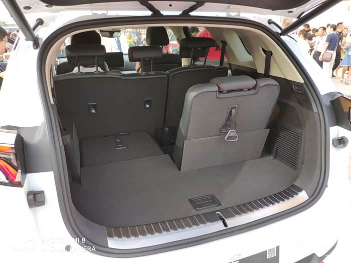 后排可以放倒,和后备箱连为一体,非常平整,