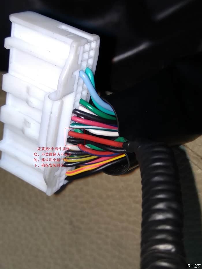 接下来就是按拆卸的反序进行安装控制器,然后就是把摄像头线束的4根线插人原来的插件中,注意一定要把插头插到底,今天我就因为没有插的底,屏幕出现前摄像头黑乎乎的一片