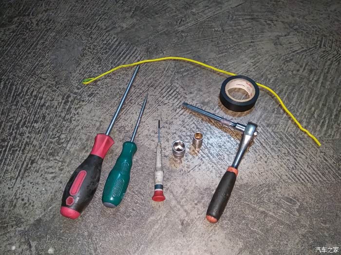 另外准备一些工具:1把一字螺丝刀用于拆卡扣,1把十字螺丝刀,1个10mm套筒,1个12mm套筒,1把小一字起子用于安装摄像头线束接头,再准备20公分左右的电线和胶带用于穿线束,以及20根左右扎带用于固定线束。