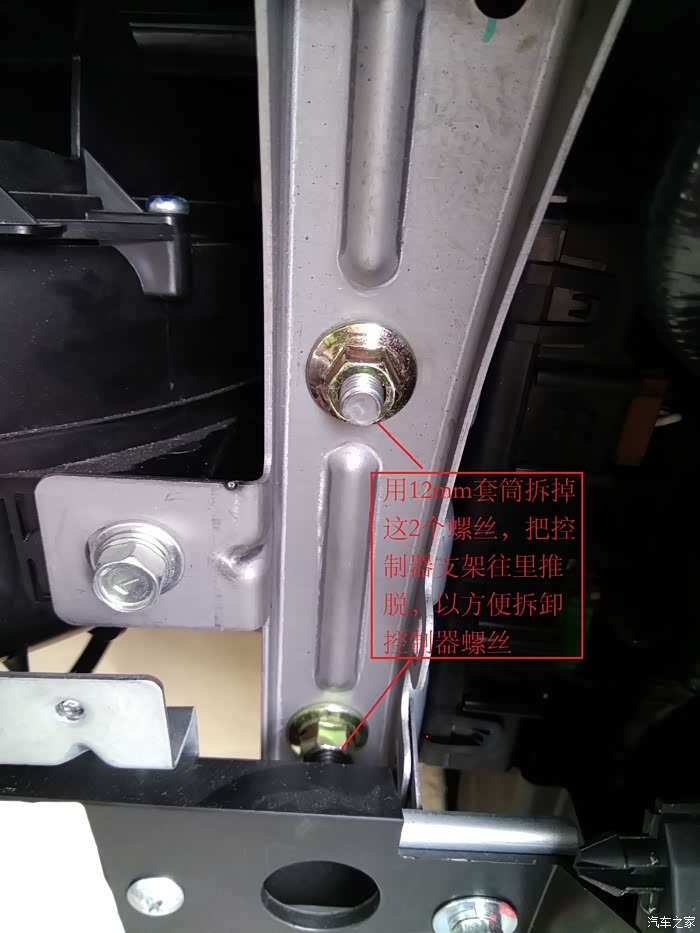 接下来就一点麻烦的,特别是控制盒上面的一个螺丝不太好拆,一定要借用套筒扳手才方便拆下来,在拆控制器之前记得先把插头拔下了