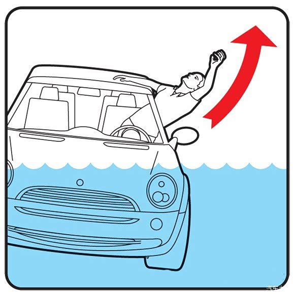5.从车窗出来。如果不知道该向何处游( 有车底部朝上的情况),向光亮的方向,或者看气泡走的方向,向气泡上升的方向游。不会游泳的,离车前应在车内找一些能浮的物件抓住。如果有条件,可找大塑料袋套在头上(注意不要漏气,没把握的话就不要了),将脖子匝紧,塑料袋内的氧气供你上浮时使用。