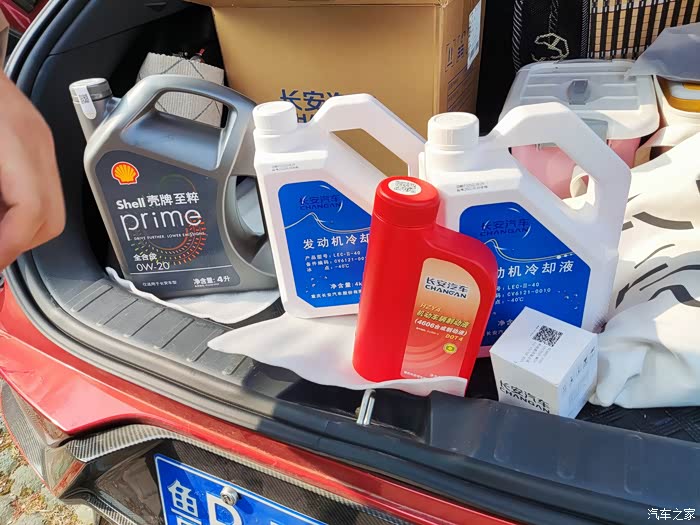 我这次的保养公里数是3.8W公里,也是第五次保养了,所以这次我安排的是大保养,除了常规的机油机滤滤芯之外,还准备了更换冷却液、火花塞、刹车油。以及顺便维修一下,更换了油底壳。