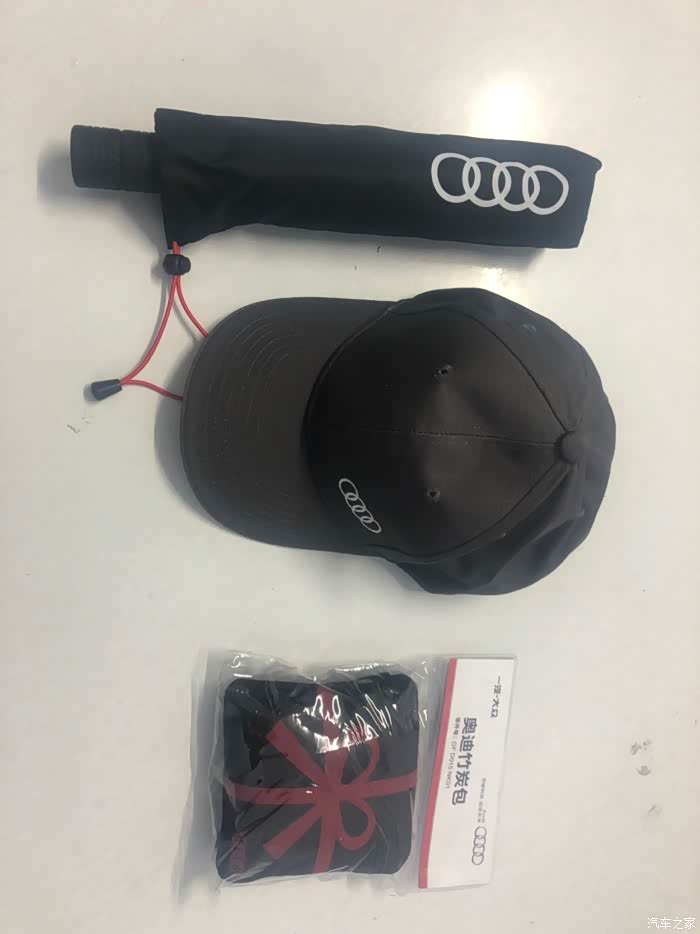 在车友圈的指导下 领取的官方福利,奥迪帽子 雨伞 竹炭包
