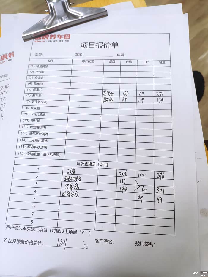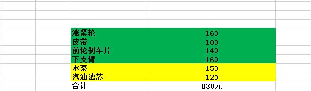 网上查的配件价格,自己记录的价格,比途虎多加了水泵和汽油滤芯