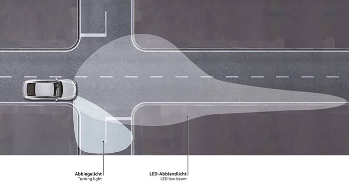 除此之外,改进的弯道辅助照明系统可以在途径十字路口时获得更大的侧向照明范围,大大提高了安全性。