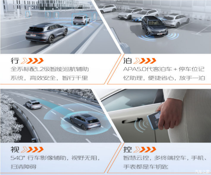 长安第四代CS75PLUS Ultra全系标配L2级智能巡航辅助系统,全面提升驾驶的智能化与便捷性。车道居中保持、智慧偏移、前碰撞预警、自动紧急制动等先进安全功能,为驾驶员和乘客提供全方位的保护,帮助在突发情况下快速应对,减少潜在风险。特别是智能巡航辅助(IACC)系统,能够根据路况自动调整车速,并智能避让大型车辆,大幅缓解长途驾驶的疲劳感。此外,APA5.0代客泊车系统结合540°全景影像和透明底盘技术,使驾驶者在各种复杂的停车环境中游刃有余,确保泊车过程更加安全、便捷且高效。