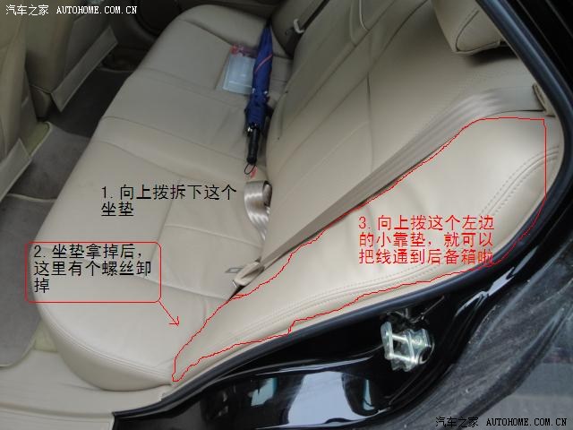 到后备箱后从这个胶管里面穿过去,我是完全穿过去的,没有露在外面: