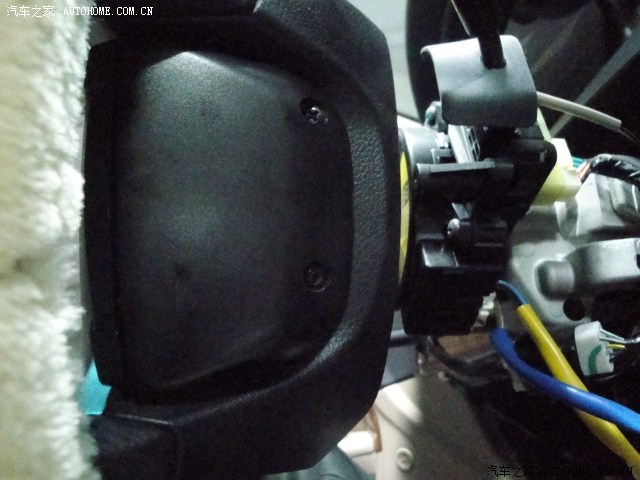 这是方向盘左边的音响按键保留位置,一个小挡板,必须从上面用翘板工具翘开(千万不要从下面翘)。
