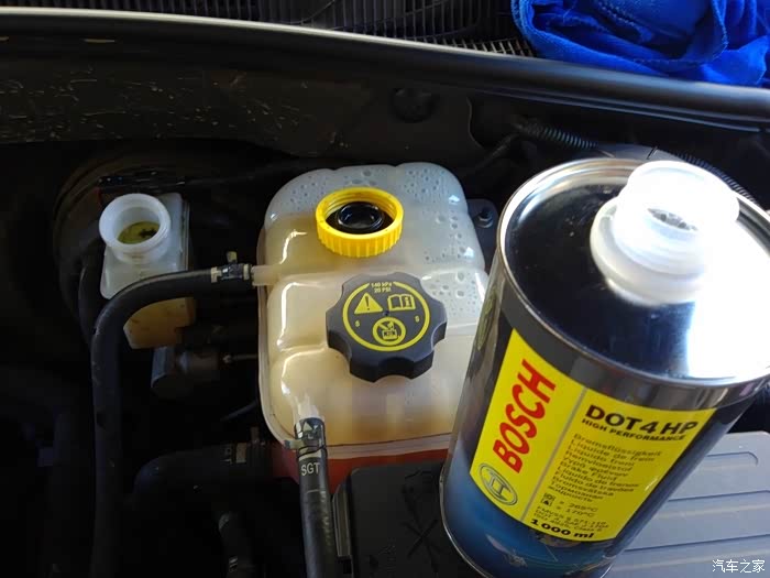 3,正规的操作应该是踩下刹车,松开放油堵,刹车踩到底后,拧紧放油堵,然后再松开刹车,已防止空气倒灌,然后再重复以上动作。我没有那么做,而是连续踩刹车放油,添加刹车油时关闭放油堵(不用加力),结束放油之前最后一脚刹车在油往外流的时候关闭放油堵并拧紧。啰嗦这么多就一句话:不要让空气进入刹车系统中。