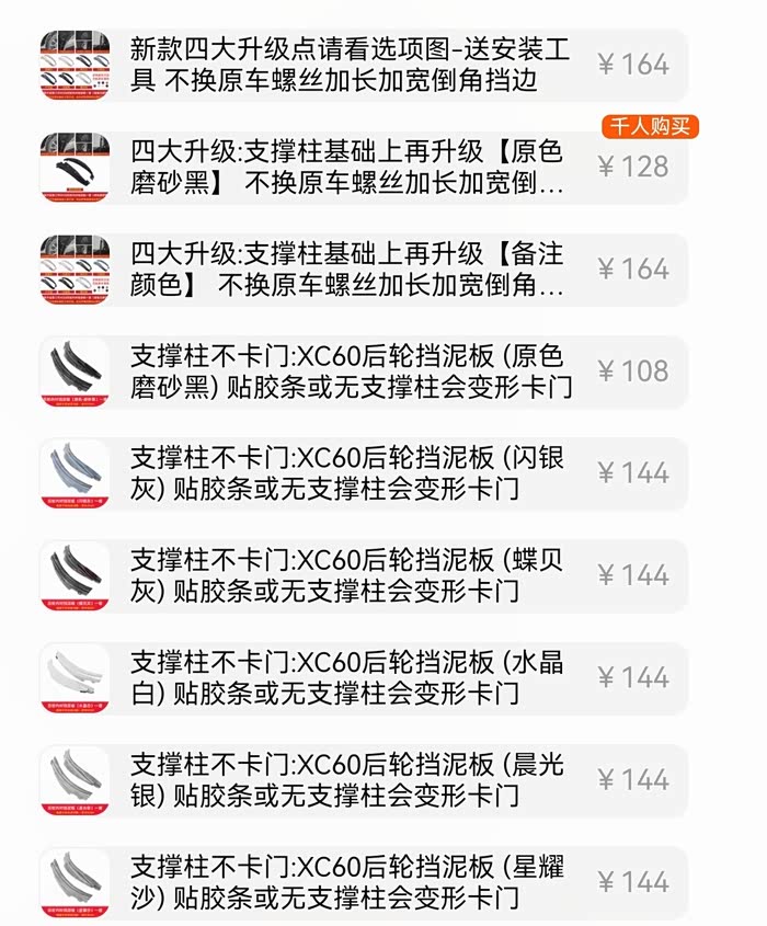 (一)颜色选择。鉴于后轮眉挡泥板长时间使用后存在掉漆潜在问题,建议有兴趣加装的新车主选择黑色无喷漆的纯塑料配件。因为排除掉漆的潜在隐患外,纯黑色配件与其他任何颜色车身搭配都没有违和感,整体也比较协调。