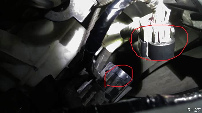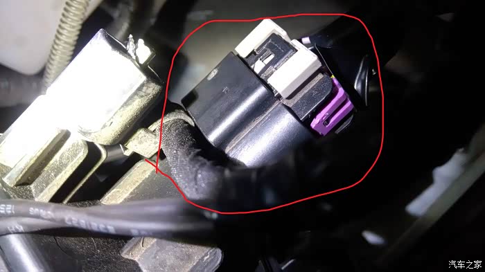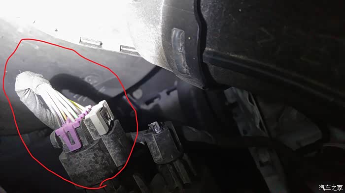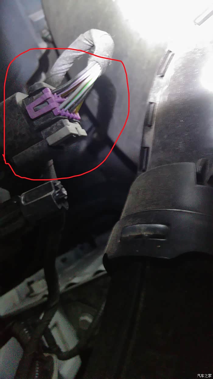 图4、大灯线束插头已取下(取下大灯线束插头是便于操作,如果嫌麻烦也可不取,直接按图12进行操作,但操作时相对困难些,还是建议取下操作更加方便)。