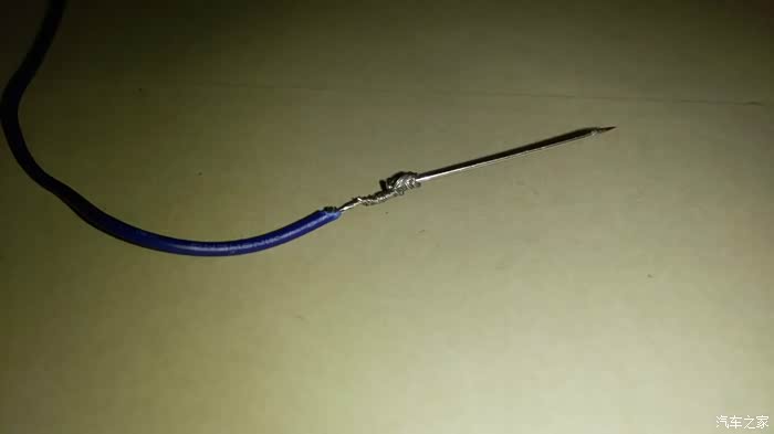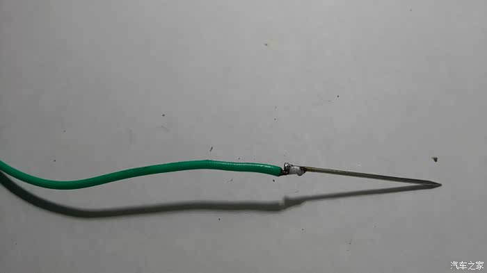 图8、用电烙铁把取电导线焊接在大头针尾端。