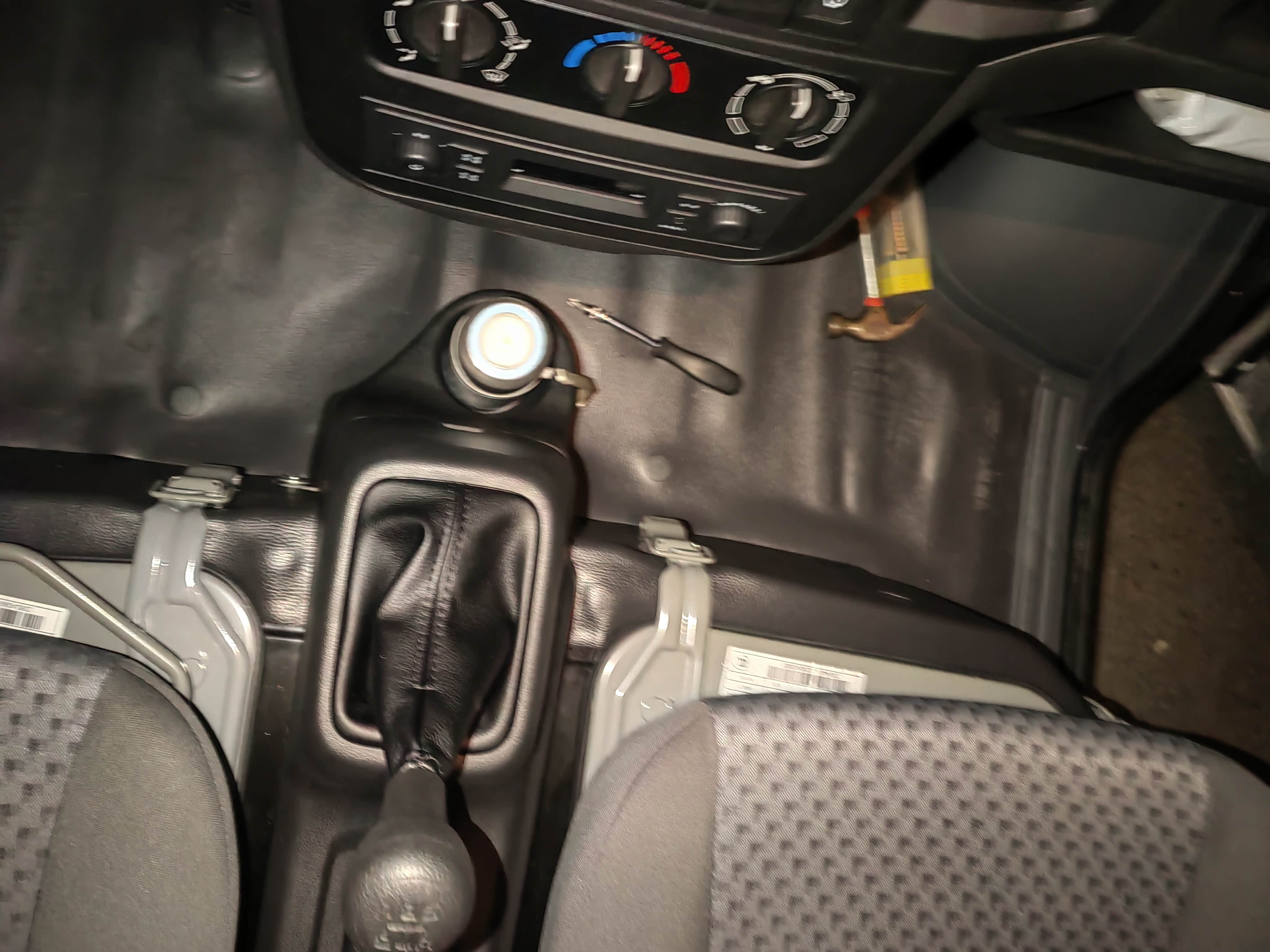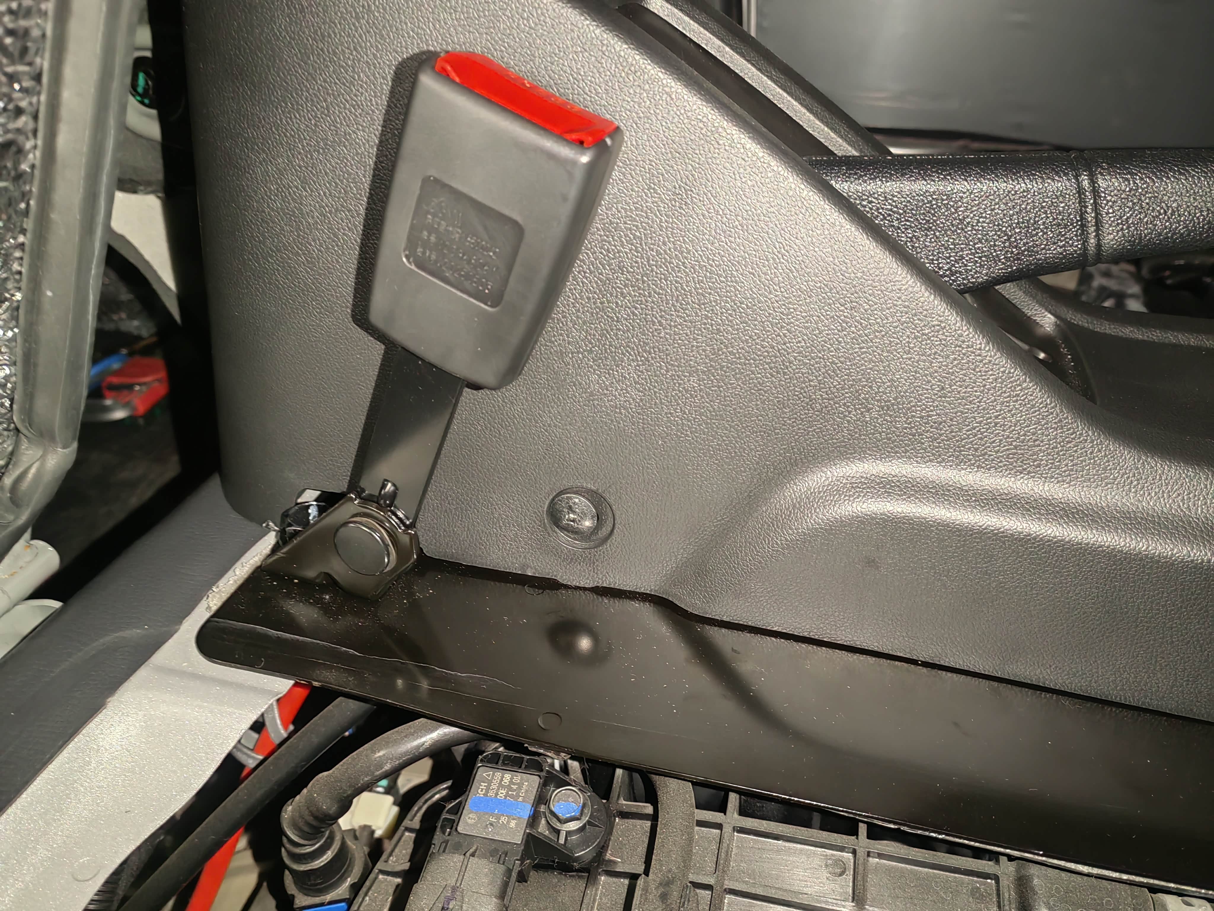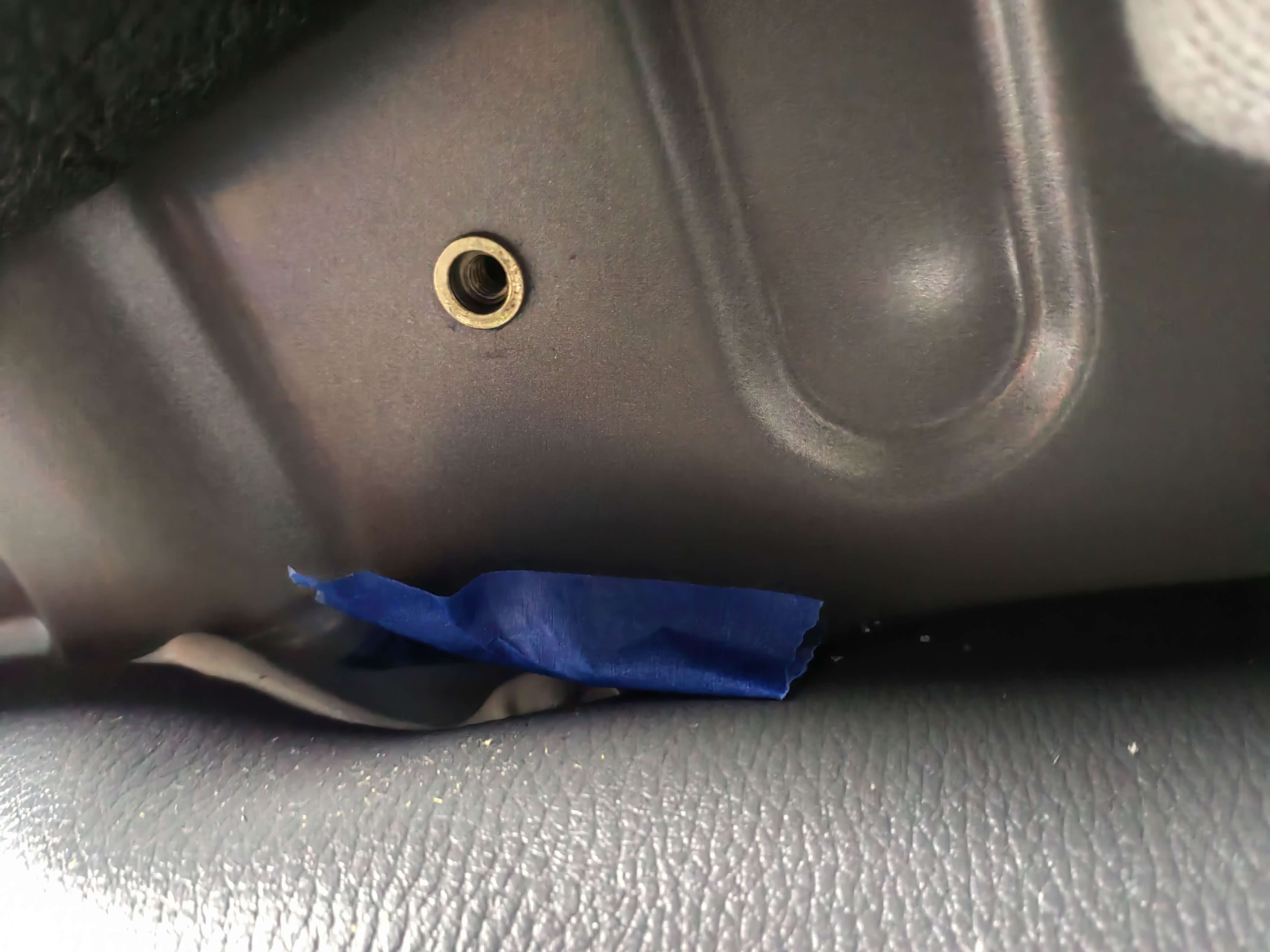 手刹盒后方螺丝孔终于刚刚好对上了,副驾侧