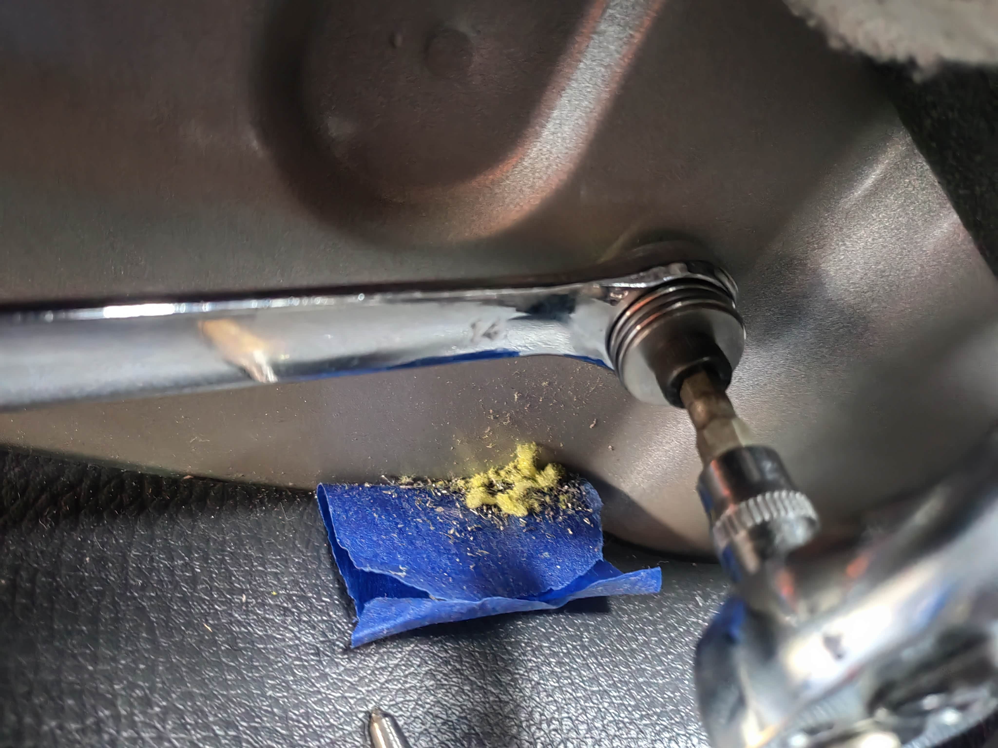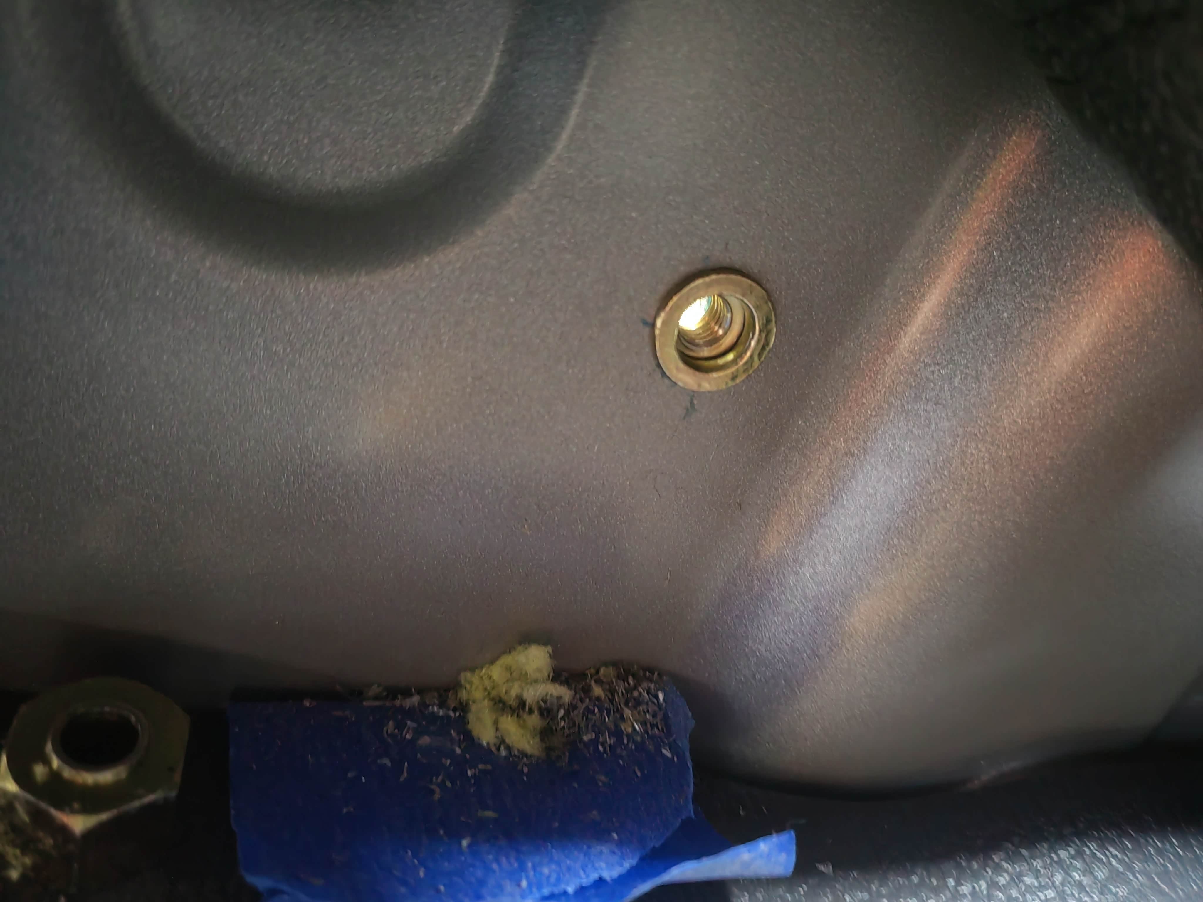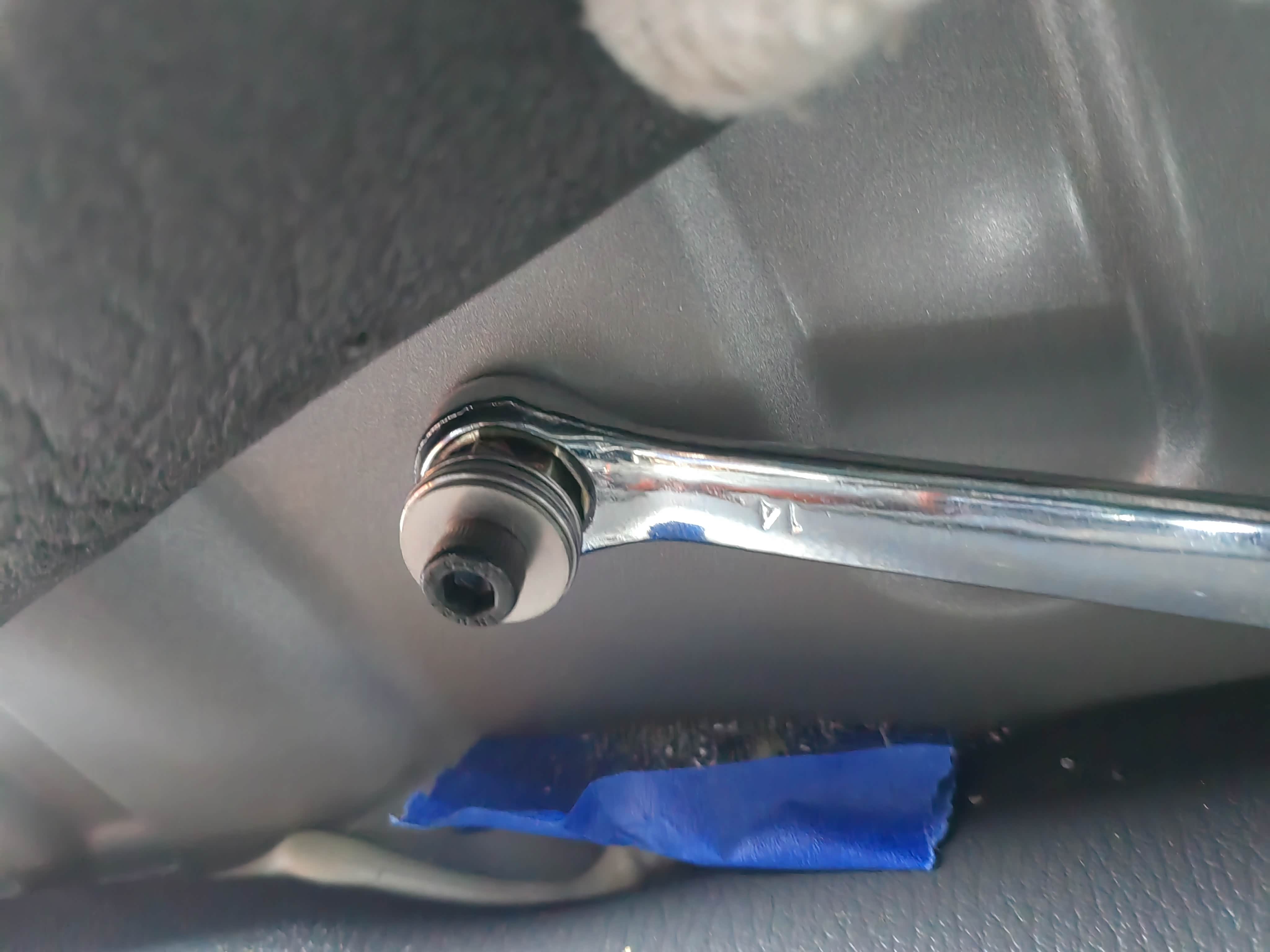 手刹盒后方螺丝孔终于刚刚好对上了,副驾侧