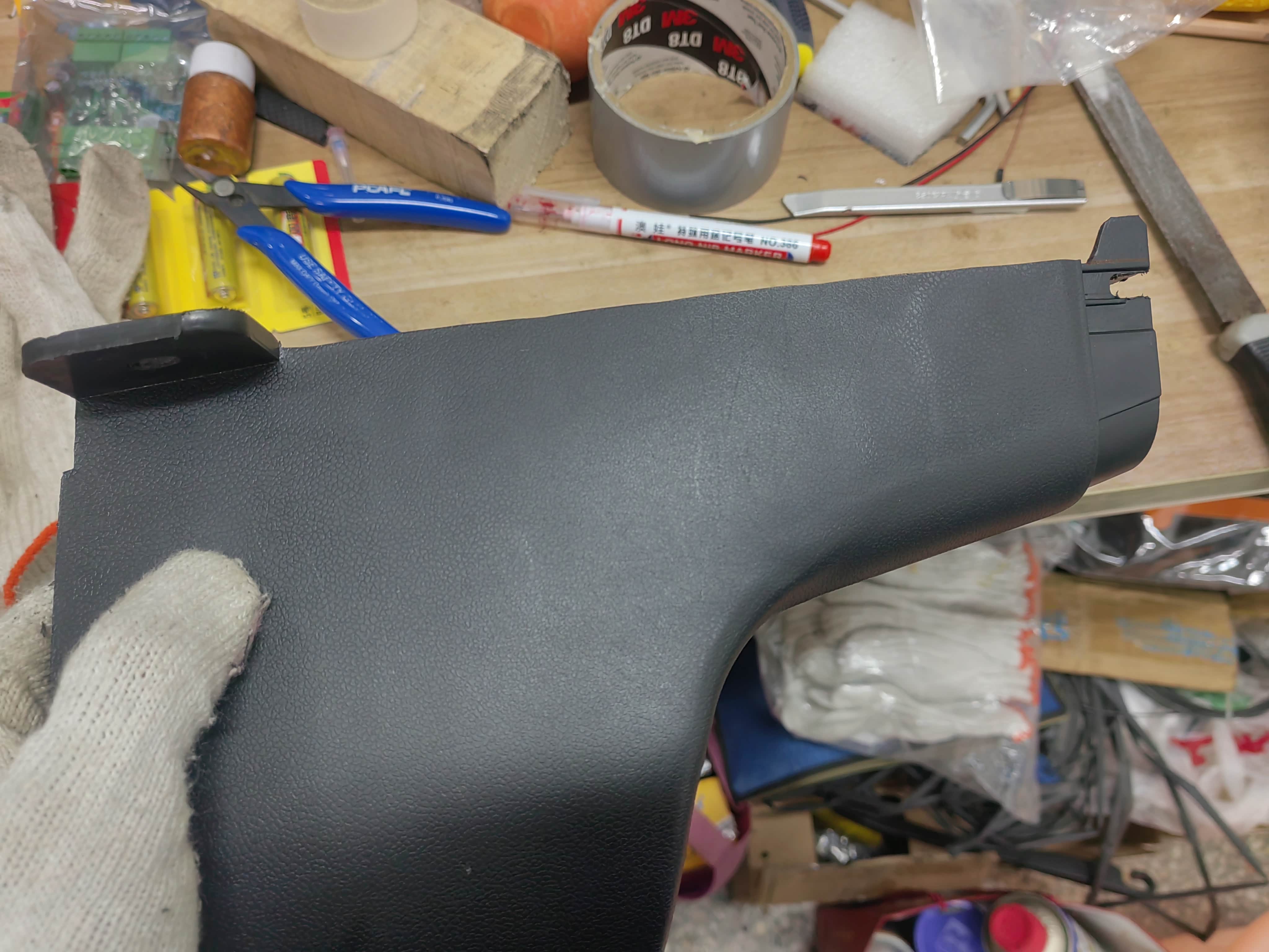 为了能够套上6388水杯架,手刹盒内侧的筋条卡子需要在往上剪掉2cm