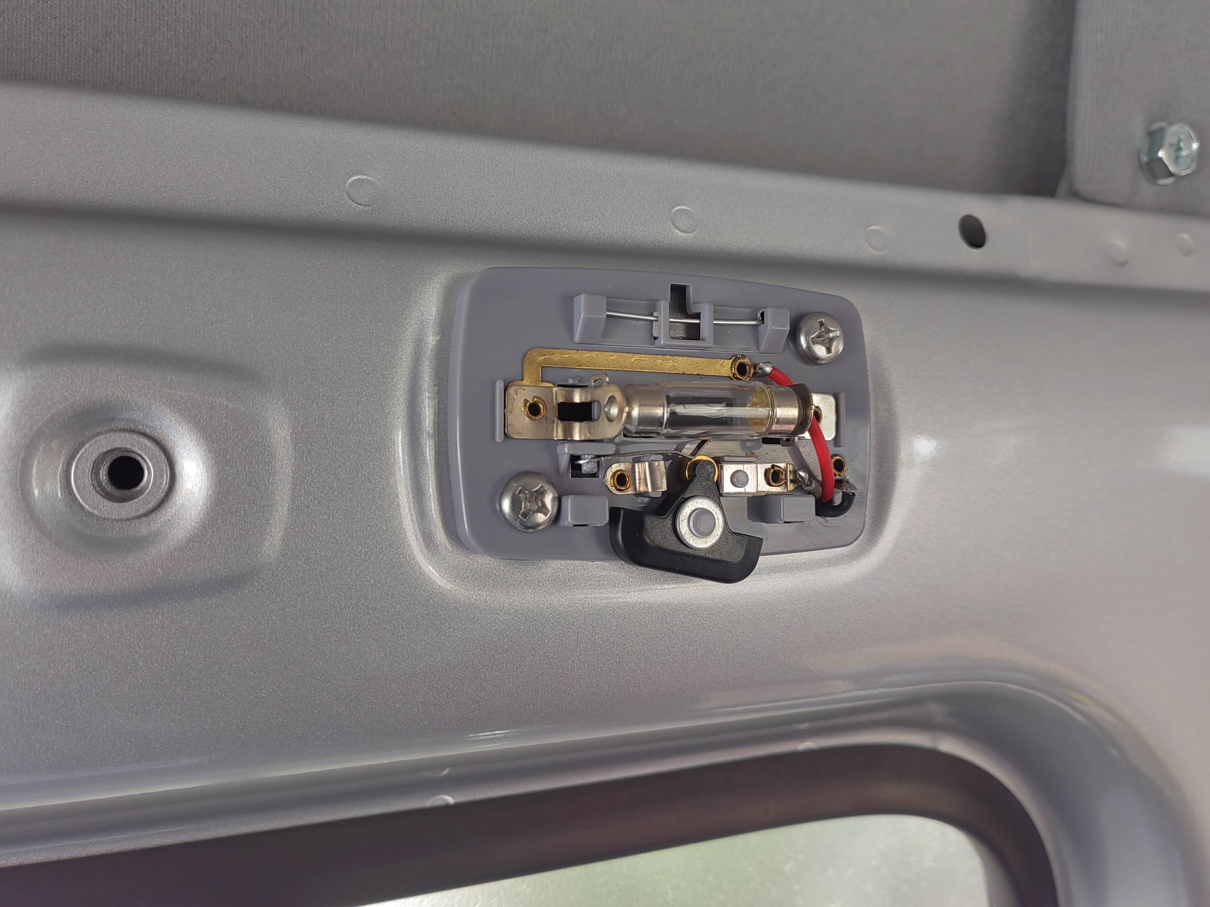 对比买来的后阅读灯发现,23款五菱之光前阅读灯只有两根线,12V和0V,没有门控线。