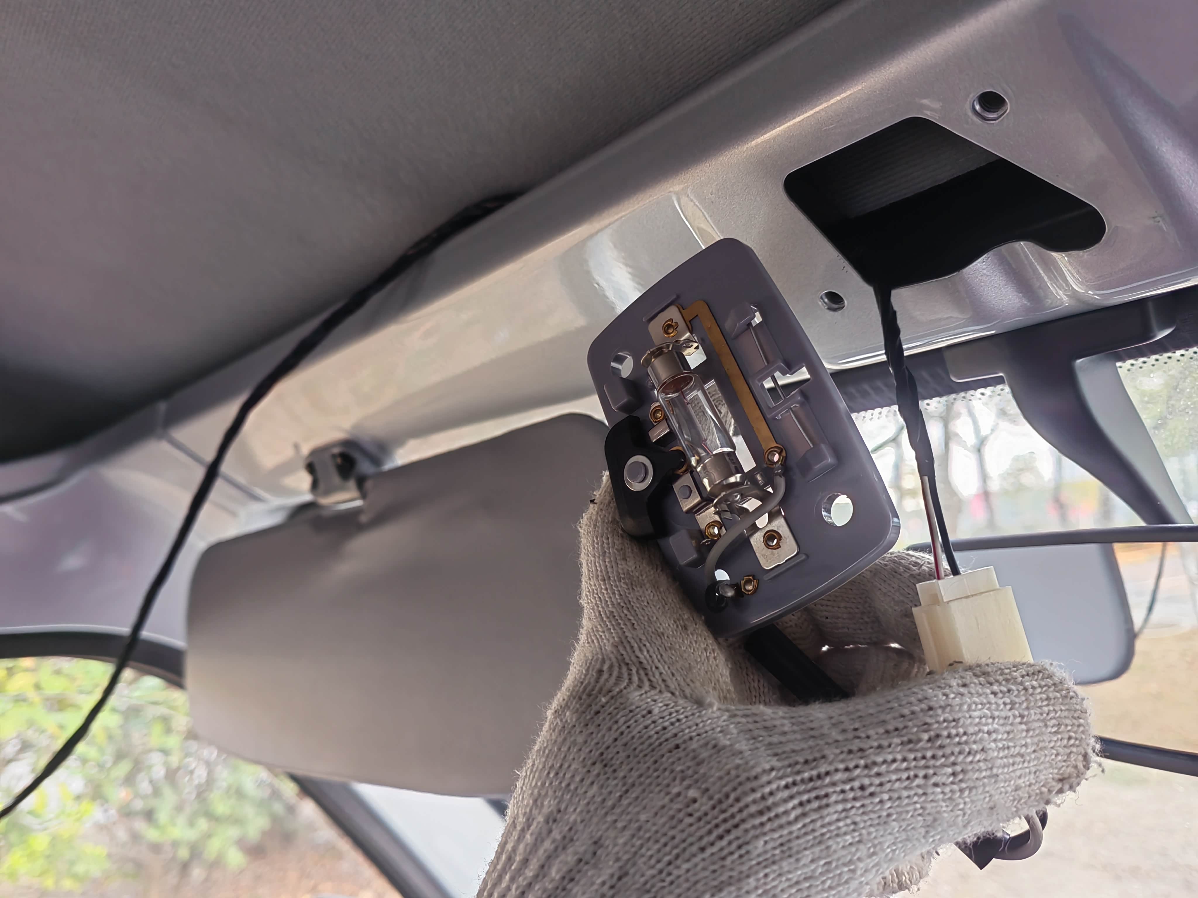 没有后阅读灯,晚上后排黑灯瞎火的很不方便,买了一个原厂的才14元,主要工作是加装线束。
