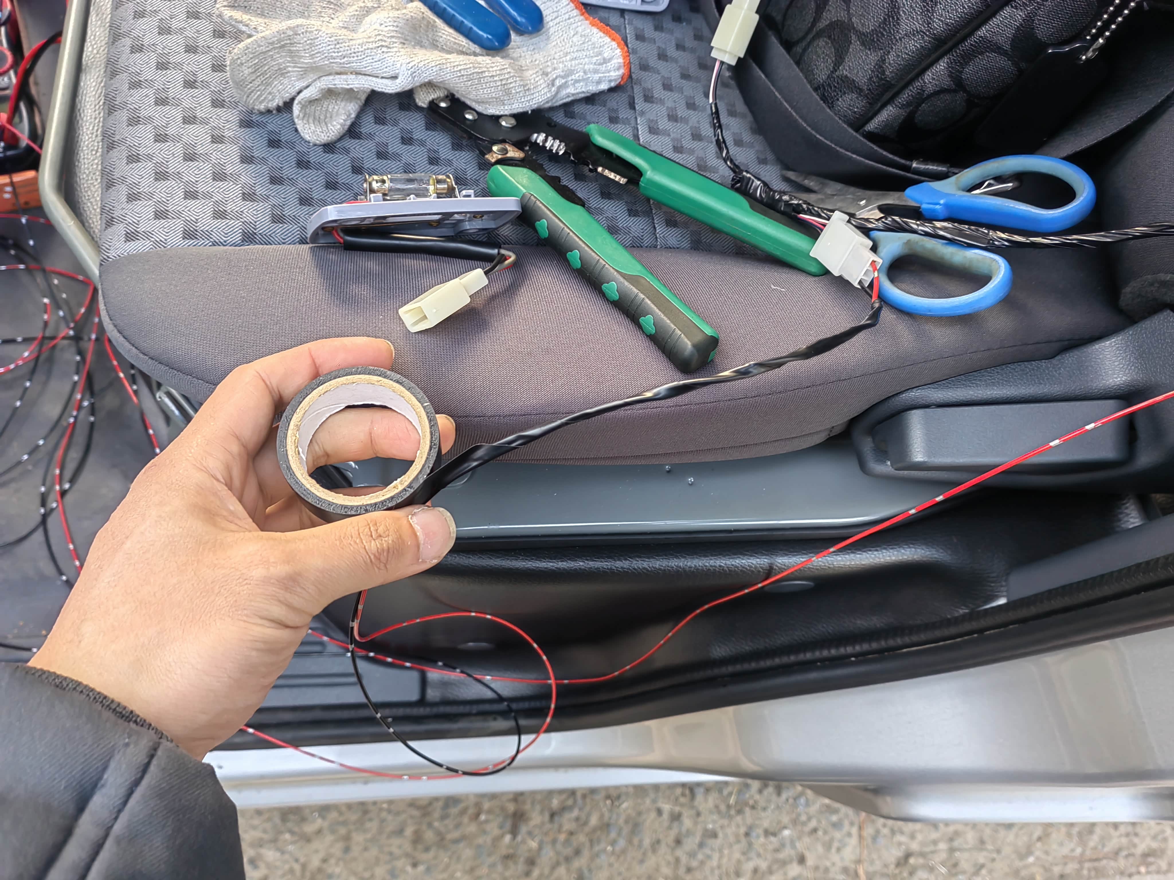 接下来用胶带包裹后阅读灯线束