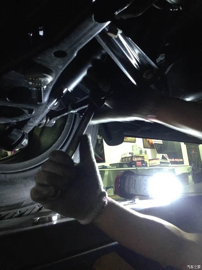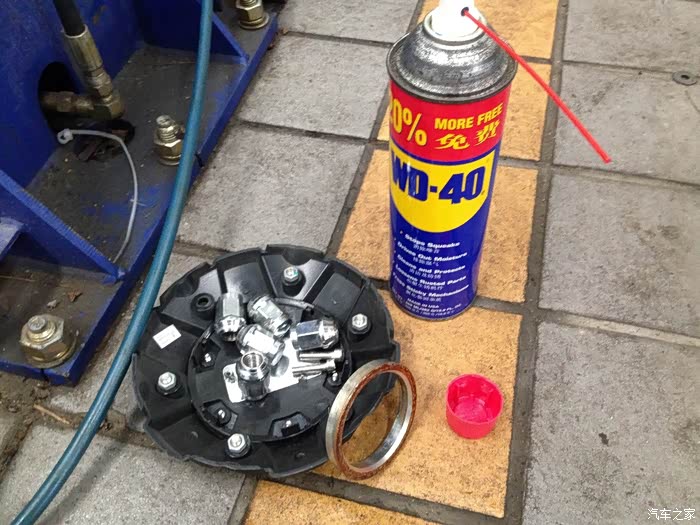 修理工就是简单硬敲,于是赶紧拿出车上的WD40去喷一点,几秒钟就轻松取下,免去硬砸对轴套的伤害。
