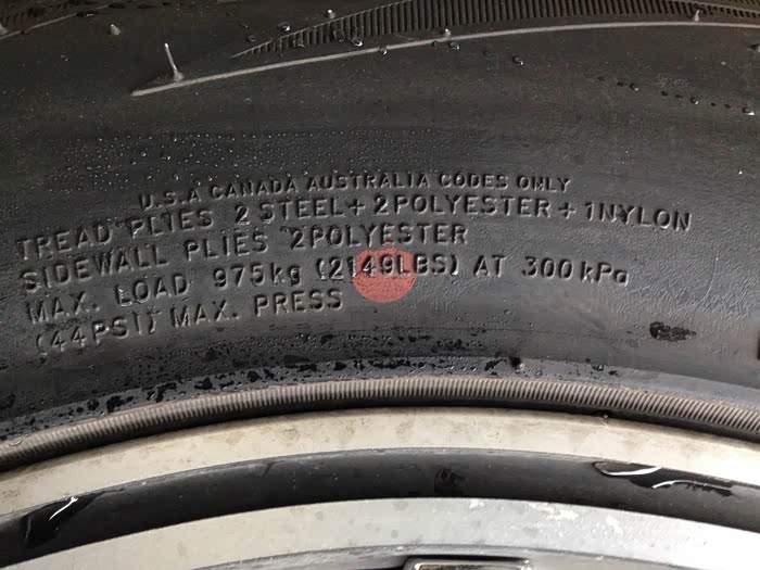 结构是标准的越野胎设计,胎面两层钢丝加两层帘布加一层尼龙,侧壁两层帘布,最大充气压力3.0。