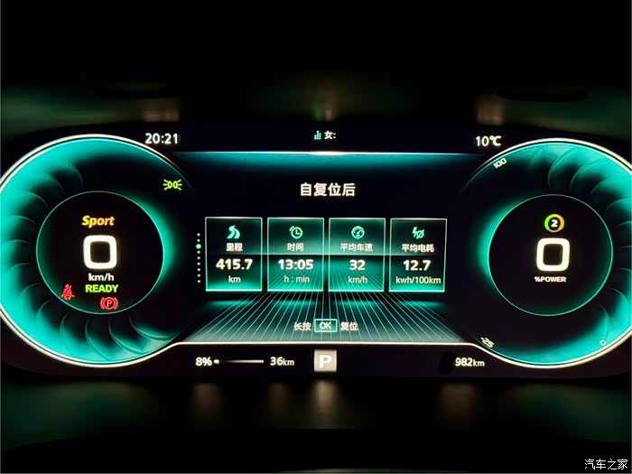 结果:慢充满 ,92%的电,跑了415KM。剩下的8%电还能跑40公里左右。