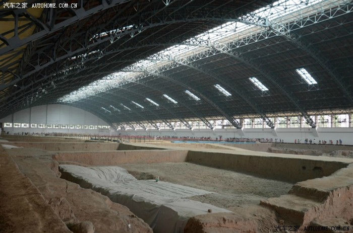 未发掘的3号坑,其实已经损坏了,看到的上面坍塌的原木