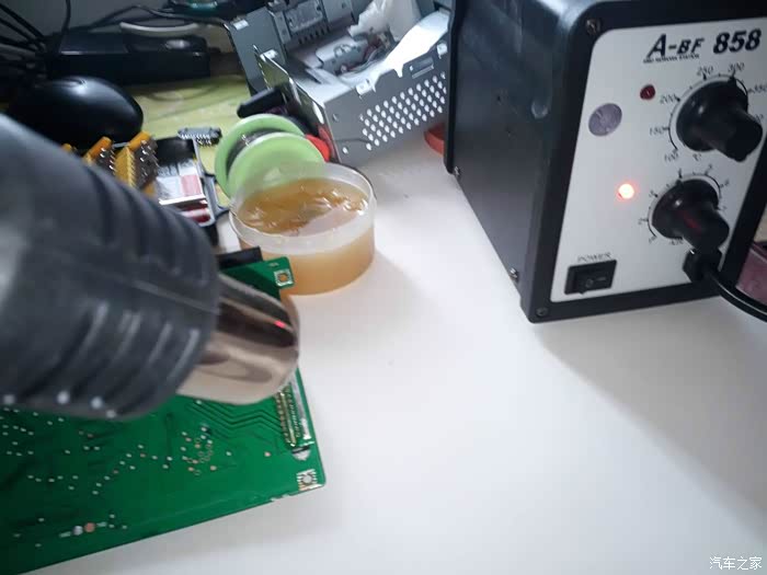 用热风机试试不好拆,最后改为堆锡法 针挑,