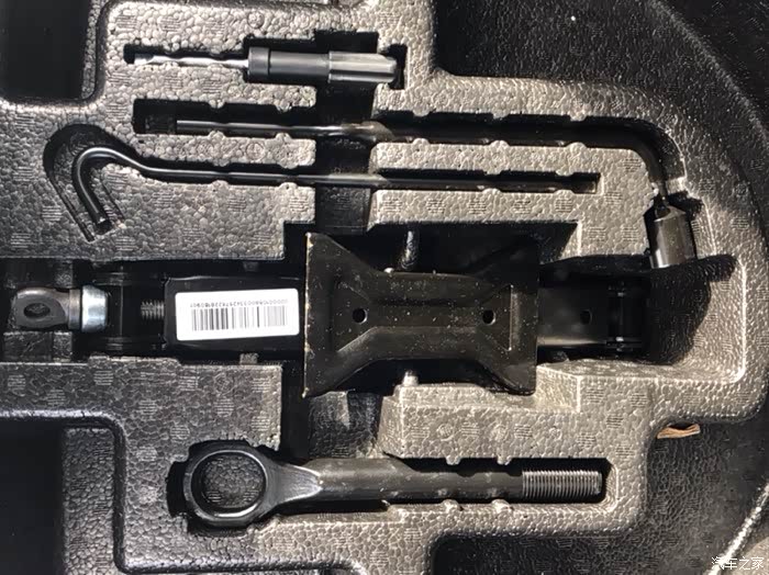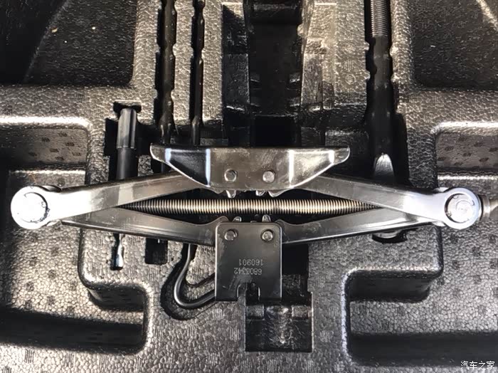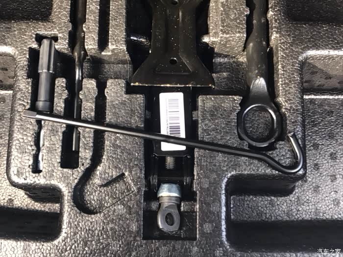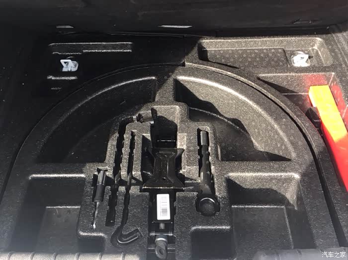备胎存放在行李箱内,位于随车工具箱的下方。翻开行李箱衬板,将行李箱衬板取出,