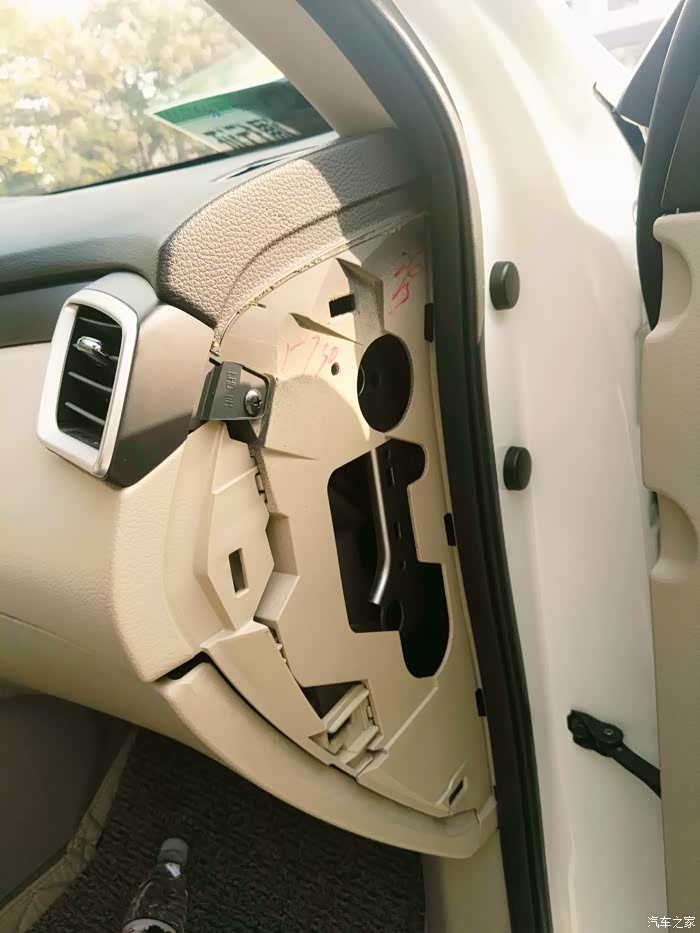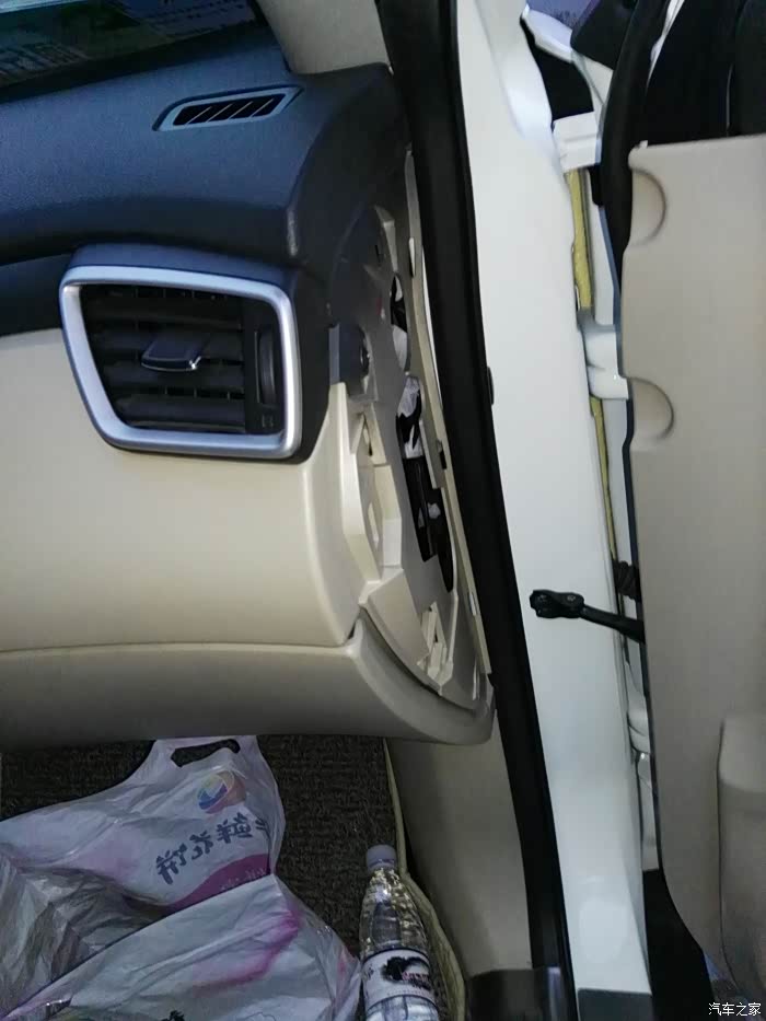 拆副驾驶侧立面挡板,卖家送的翘班,面板卡槽提示处用力就下来了,这时卖家回信了,给予鼓励