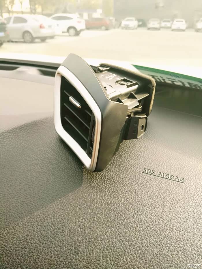 拆完护板,空调出风口有一个螺丝,出风口费了会功夫,有点难整,还真得用力往外抠才下来的;